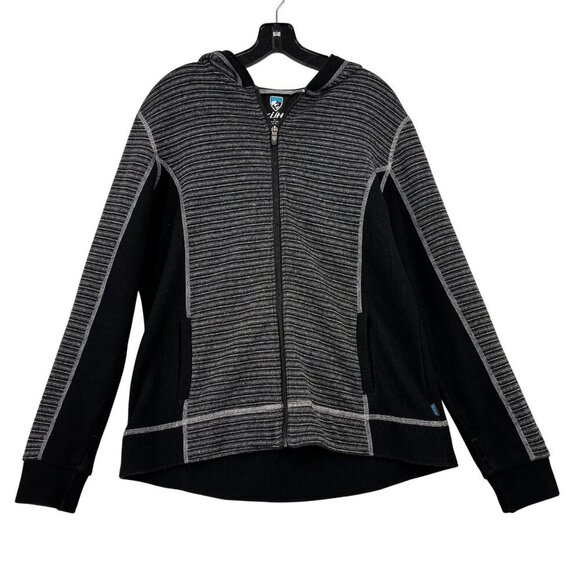 Kuhl Chianti Fleece Wool Blend Hooded Jacket Size L Black Gray Zip Up Hoodie