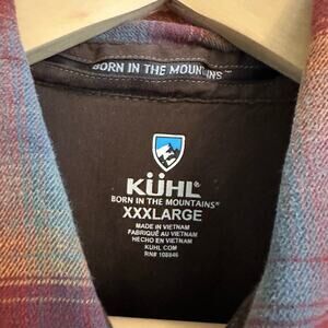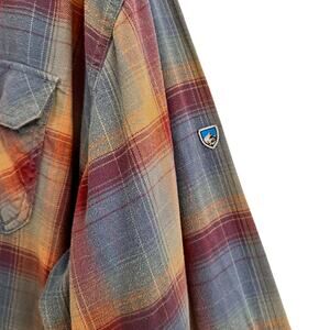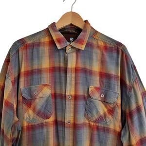 Kuhl Dillingr Flannel Shirt XXXL Kaleidoscope Plaid Blue Orange Outdoors Gorp
