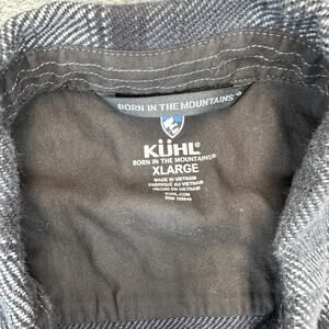 Kuhl Disordr Flannel Shirt Mens Size XL Gray Blac Striped Plaid Button Up Hiking