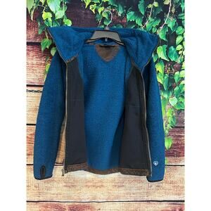 Kuhl Fleece Leather Flight Jacket Full Zip Hoodie Sherpa Teddy Coat Women's XS