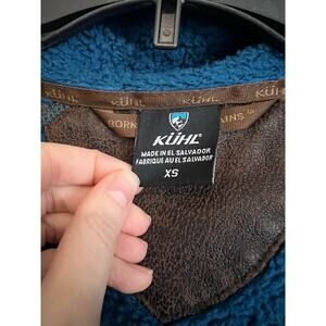 Kuhl Fleece Leather Flight Jacket Full Zip Hoodie Sherpa Teddy Coat