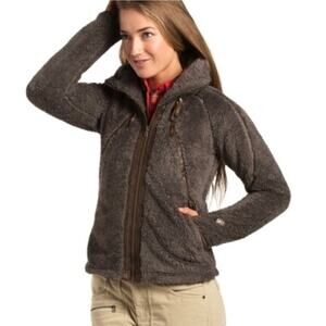 Kuhl Flight Full Zip Faux Leather Trim Sherpa Fleece Two Tone Hooded Jacket
