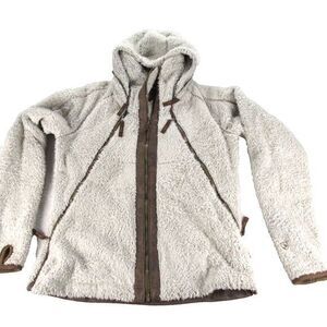 Kuhl Flight Jacket Women Medium Tan Italian Fleece Zip Pockets Stow HoodFull Zip