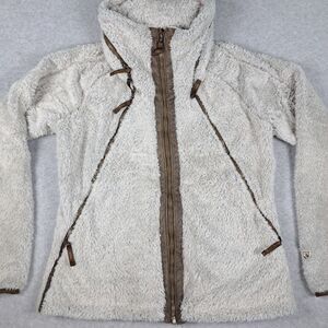 Kuhl Flight Jacket Womens L Hooded Beige Brown Sherpa Fleece Full-Zip