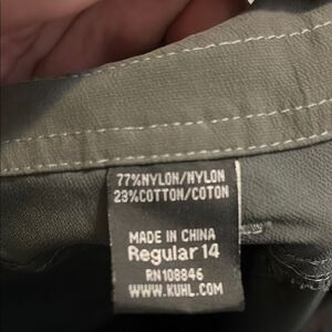 Kuhl Green Convertible Outdoor Gorpcore Hiking Casual Pants. Stylish dark gray outdoor pants. Perfect for hiking or casual wear.