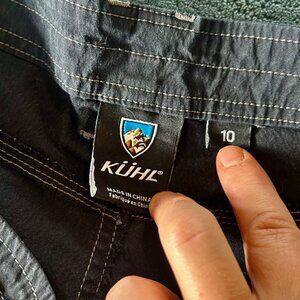 Kuhl hiking/cargo style shorts in a soft black color for sale, size 10. They are in excellent (used) condition. I cannot wear them as I have gained weight. Included various shots, angles, details, tags, and measurements. If you have any questions, please reach out. I do not accept returns. They will be shipped from a pet-friendly home. All items shipped USPS.
