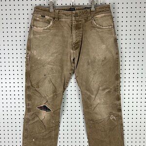 Kuhl Hot Rydr Plaid Lined Pants 36x32 Khaki Brown Hiking Distressed Worn Outdoor