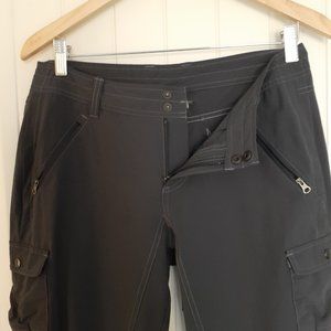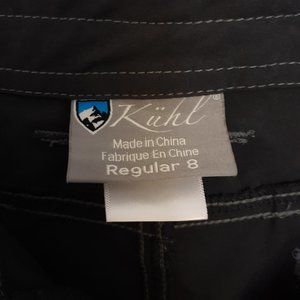 Very good pre-owned condition. Kuhl Kaya Pant. Size 8 Regular. Nylon/Spandex blend. Machine wash. Zip & snap closure. Two front zipper pockets, two back snap pockets, and two snap leg pockets.