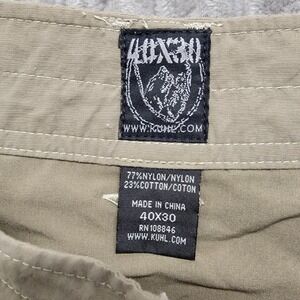 Kuhl Liberator Convertible Stealth Zip Off Nylon Hiking Pants Mens 40x30 Khaki. Condition is Pre-owned. Still in really good shape. No rips, stains or tears. Normal wear. Take a look at the pictures (zoom in) and measurements please. Thanks for looking. Enjoy the rest of your day. Shipped with USPS Priority Mail