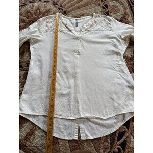 Great condition Kuhl Martina 3/4 sleeve button back blouse in off white with Aztec print. Size XL. Stock photo in different color added to show fit.
