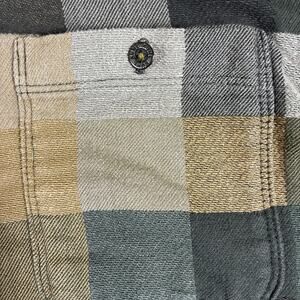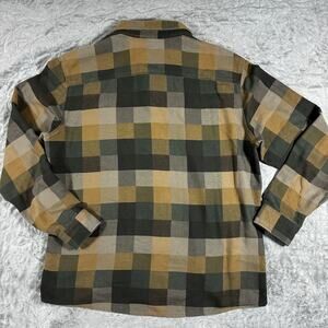 Kuhl Pixelatr flannel button down shirt, size medium. Green check plaid color, perfect for camping, outdoors, hiking, or casual wear. Mid-weight cotton blend flannel. Minor wear on one of the cuffs. Cotton polyester blend.