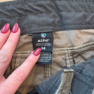 ** Kuhl Mens Green Ambush Cargo Shorts 34 Zipper Pockets Durable Outdoor Wear