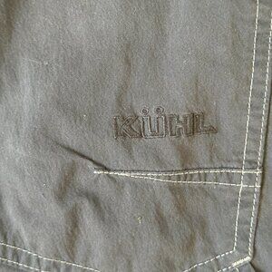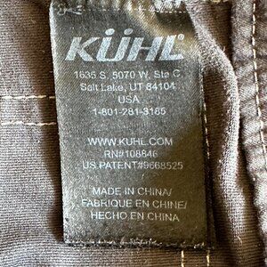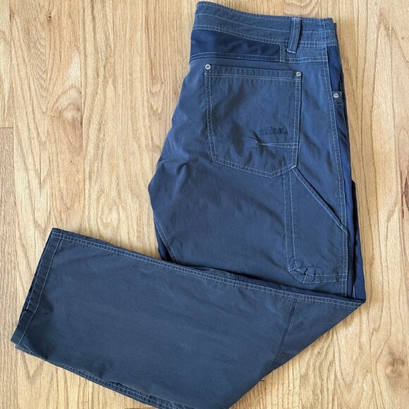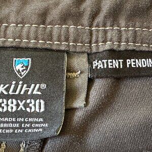 Nice looking and well made Kuhl “Born In The Mountains” Men's Hiking Pants 38 x 30 — RN# 108846 Dark Gray. Cotton blend — 68% cotton, 29% nylon, 3% elastine. Machine washable. Pre-owned and in good condition — some minor wear on the pants.