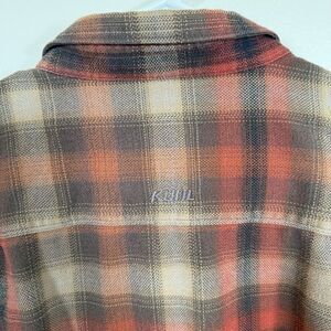 Kuhl Men's Size L Law Flannel Long Sleeve Shirt Brown Orange Cotton Tencel EUC *