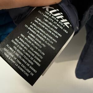 Kuhl Men's Spyfire Hooded Jacket Coat Puffer Quilted Down Fill Navy Blue Medium