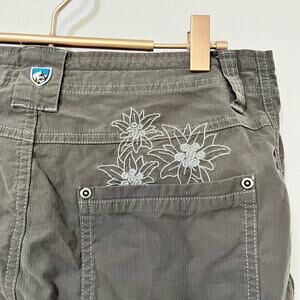 Kuhl Mid Rise Hiking Capri Pants Size 8 Charcoal Embroidered Outdoor Gorpcore