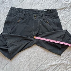 These gray cargo shorts from Kuhl are crafted for comfort and versatility, featuring a relaxed fit and lightweight fabric perfect for outdoor adventures or casual outings.