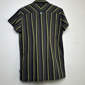 Kuhl Mountain Grey Green Striped Button Down Short Sleeve Size Small