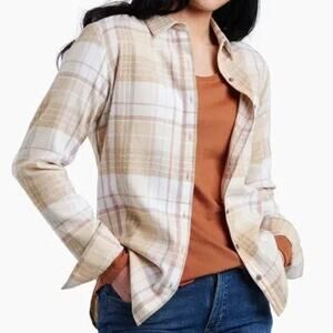 Kuhl NEW Kamila Flannel Button Shirt Womens Medium Copper Plaid Gorpcore Top