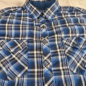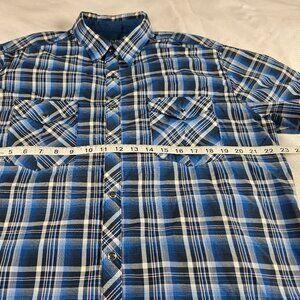 Kuhl Pearl Snap Shirt Mens Large Blue Plaid Short Sleeve Eluxur Ionik Quick-Dry