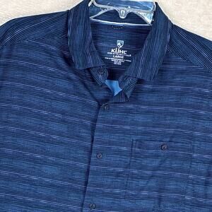 Kuhl Persuadr Camp Shirt Mens L Blue Striped Hiking Outdoor Preppy Performance