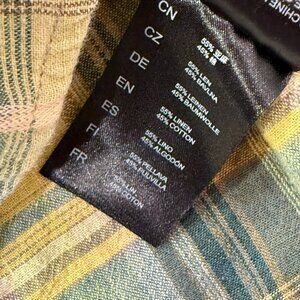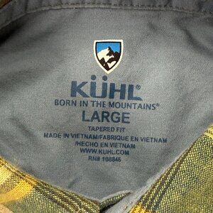 Kuhl Persuadr Shirt Men L Yellow Green Brown Linen Plaid Short Sleeve Button Up