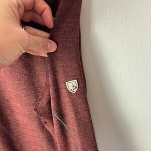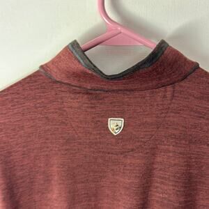 Gently Used Kuhl Quarter Zip Ryzer Pullover Light Sweater. This is a men's medium. Darker red color throughout with dark gray accents on the seams. Brown / tan Kuhl logo on the shoulder sleeve and upper back. Super comfortable and breathable! 97% polyester, 3% elastane. Kuhl style 3112.