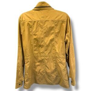 Item Details: Lightweight Outer layer pulls moisture off your skin; inner layer dries fast and breathes Urban-style, mild-weather jacket with grosgrain detailing 2-way front zipper under military-bar button placket; gusseted cuffs 2 chest pockets; 2 button-flab hand pockets; zippered hand pockets Nylon hood that stows in the collar when not needed Internal drawcord SILVER OAK embroidered on bottom hem Condition: Excellent, pre-owned Material: 63% Cotton / 36% Nylon / 1% Spandex