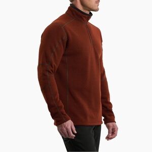 Excellent preowned condition men’s size large. Red brown quarter zip fleece sweater. Color called Lava. The REVEL™ Men's 1/4 Zip Sweater is incredibly soft yet durable. It’s made with KÜHL’s exclusive lightweight KASHMIRA™ performance fleece that dries quick, manages moisture and delivers superior warmth. The quarter zip provides easy temperature regulation and style.