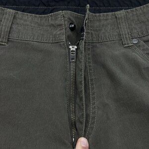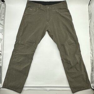 This listing is for a pre-owned pair of Kuhl Revolvr vintage patina dye gray straight leg carpenter outdoor hiking pants in a size 38x32. This pair of pants are in good pre-owned condition with no major stains or rips. This pair of pants was made in China and is made of 68% cotton, 29% nylon, and 3% Spandex. Measurements are as follows: waist is 38“, inseam is 31“, front rise is 12“, back rise is 14“, and ankle cuff length is 18“. Note: measurements may differ from brand’s sizing. Please see all listing photos, as this pair of pants are for sale in as/is pre-owned condition.
