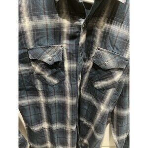 Kuhl Shirt Mens Large Long Sleeve Pearl Snap Blue Shirt Born In The Mountains