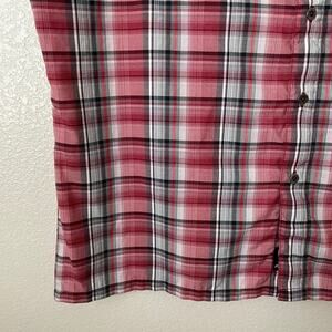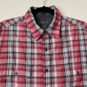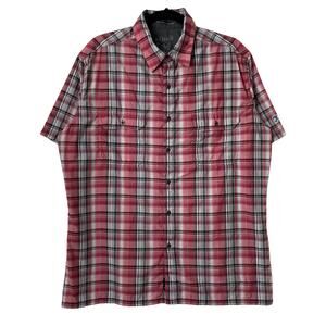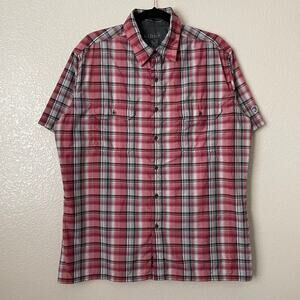 Kuhl Shirt Mens Large Red Gray Eluxur Plaid Buttoned Short Sleeve Outdoor Hiking