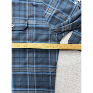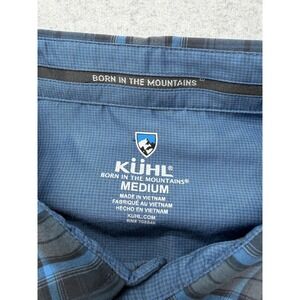 Kuhl Shirt Mens Medium Blue Gray Plaid Button Front Long Sleeve Outdoor Hiking