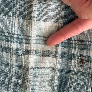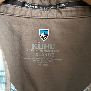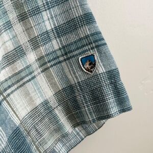 Kuhl Shirt Mens XL Blue Plaid Short Sleeve Scorpio Linen Blend Button Up Hiking