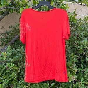 Kuhl Short Sleeve Keyhole Shirt Womens Orange Floral Pattern Top. Size Large. 🚭Smoke free home🚭 🐶Pet free home🐈📦Fast Shipping📦