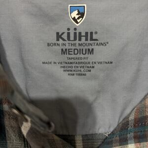 Kuhl Skorpio Plaid Shirt Mens Sz M Linen Brown Blue Pockets Lightweight UPF 15+