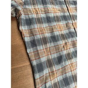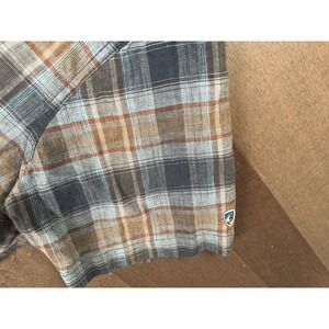 Kuhl Skorpio Shirt Men's XL Blue Linen Blend Plaid Button Up Outdoor Hiking Mtns