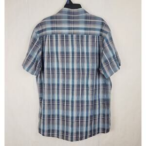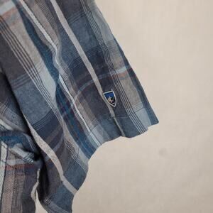 Kuhl Skorpio blue plaid linen blend short sleeved button up shirt Size large
