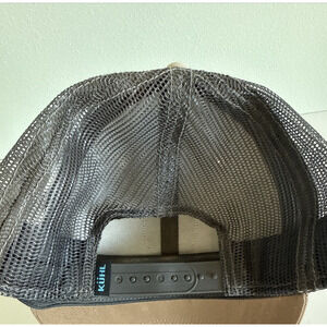 Kuhl Snap Back Trucker Hat Born In The Mountains Leather Patch Tan w/ Gray Mesh