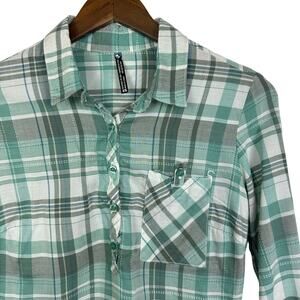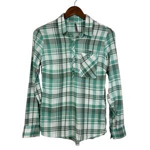 Kuhl | Spektra Green Plaid Popover Roll Tab Sleeve Lightweight Casual Shirt