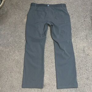 Kuhl Strattus Ripstop Lightweight Hiking Outdoor Pants Green 14. Wrinkle-resistant ripstop polyester air fabric feels good, looks good and comes out of your suitcase ready to wear-never needs ironing. Relaxed legs and rib-knit waist ensure comfort, while an internal drawcord provides a personalized fit. Bottom-hem cinch adjustment allows you to tweak length and ankle hem circumference to fit the conditions. Zippered front pockets keep your valuables secure. Relaxed fit. Approx measurements: 9.6“ rise, 31.75“ inseam, & 18.25“ waist. Great pre-owned condition. Please note a couple of small pulls in the fabric and a few stains, most noticeably above the knee. Smoke/pet free home. Offers welcome. Bundle & save. Ship same/next day. Packaged w/ care.