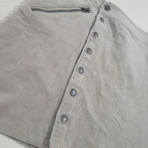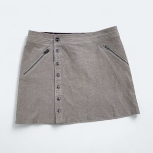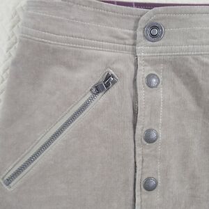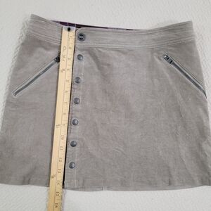Cute gray corduroy skirt. Button front with two zippered front pockets. Two back pockets with Kuhl embroidered on one.