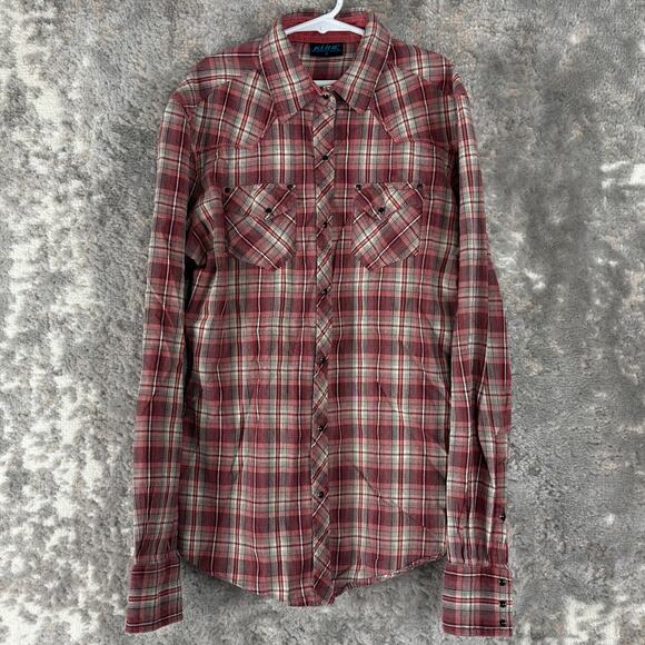 Kuhl Sz S Plaid Cotton Blend Casual Snap Button Top Red Long Sleeve Pocket