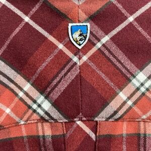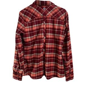 Kuhl Women Red Flannel Plaid Shirt Button-down Sz.M Small Tear Bottom Right Pic