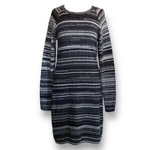 Kuhl Womens Alessandra Sweater Dress Sz Medium Gray Stripe Wool Alpaca Cotton