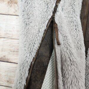 Kuhl Women's Flight Vest Size Small Hooded Soft Cozy Jacket Beige Sherpa Fleece Zip