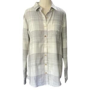 Kuhl Women's Kamila Flannel Shirt Light Gray Plaid Button Down Size SMALL