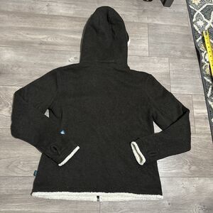 Kuhl Womens L Alfpaca Fleece Taupe Brown Hooded Full Zip Sweater Jacket