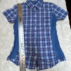 Kuhl Women's Suono Button Front Shirt Plaid Short Sleeve Top Blue Size Medium