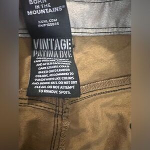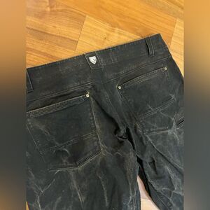 Kuhl Rydr vintage patina black denim jeans. these are intentionally marbled, bleached and distressed, they are in excellent condition, great for casual wear or hiking, etc. Size 38 x 32